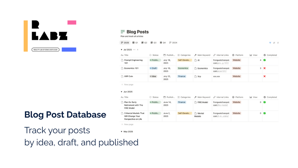 - π Blog Post Database β Track your posts by idea, draft, and published